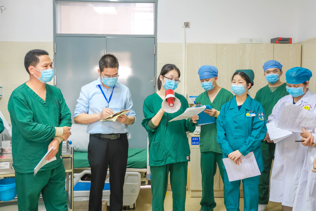 为进一步提高我院医务人员对胸痛患者抢救应急处置能力,熟练处理流程,为胸痛患者提供更快捷更规范诊疗服务,提高胸痛患者的抢救成功率,3月22日下午,我院急诊科联合心血管内科举行胸痛患者救治应急处置演练。医务科、护理部、质控科、科教科等职能部门负责人及各临床科室代表观摩了本次演练。医务科罗锦新科长担任现场总指挥。